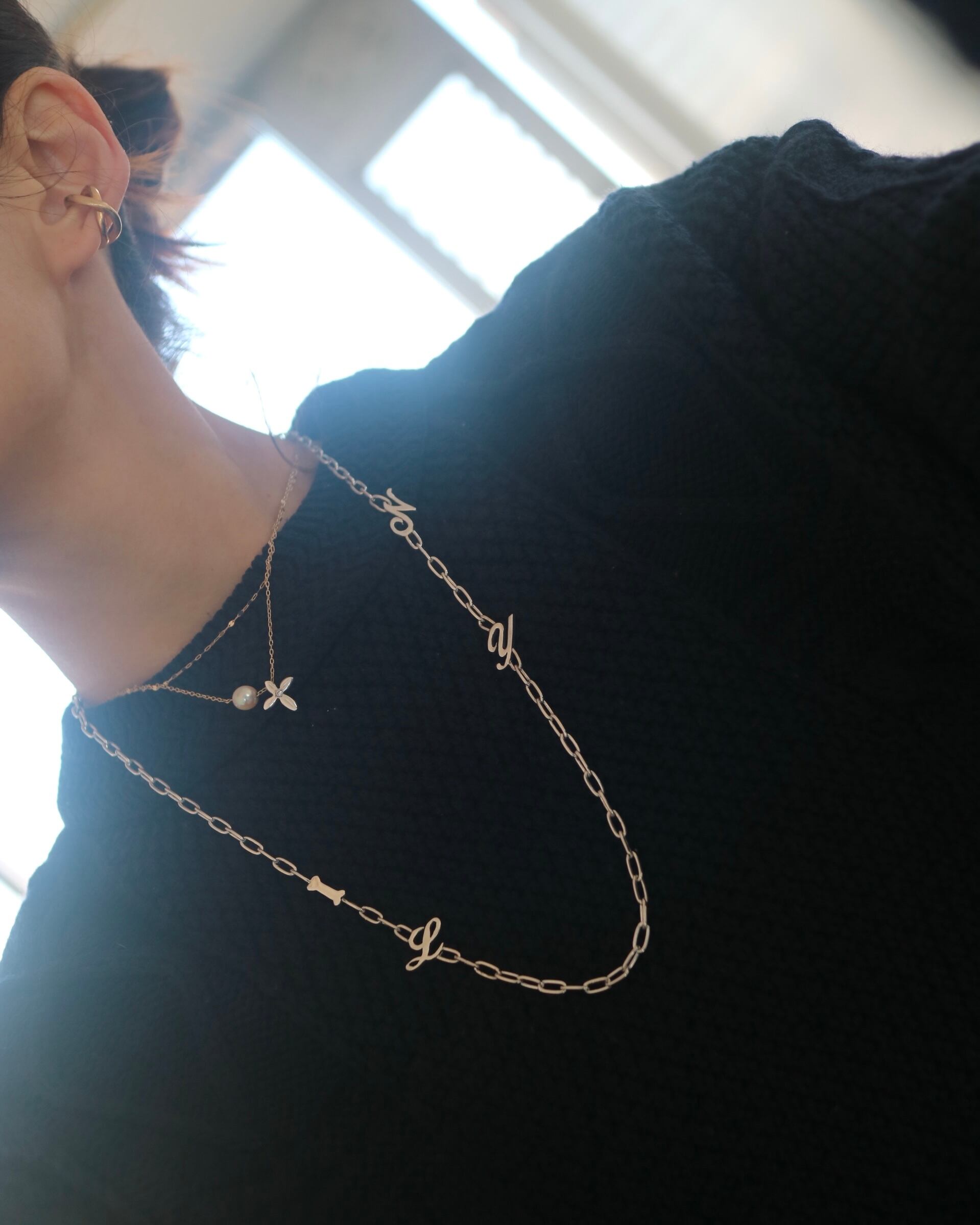 Initial chain choker カスタムオーダー イニシャル3文字とボーンパーツ 長さ60cm