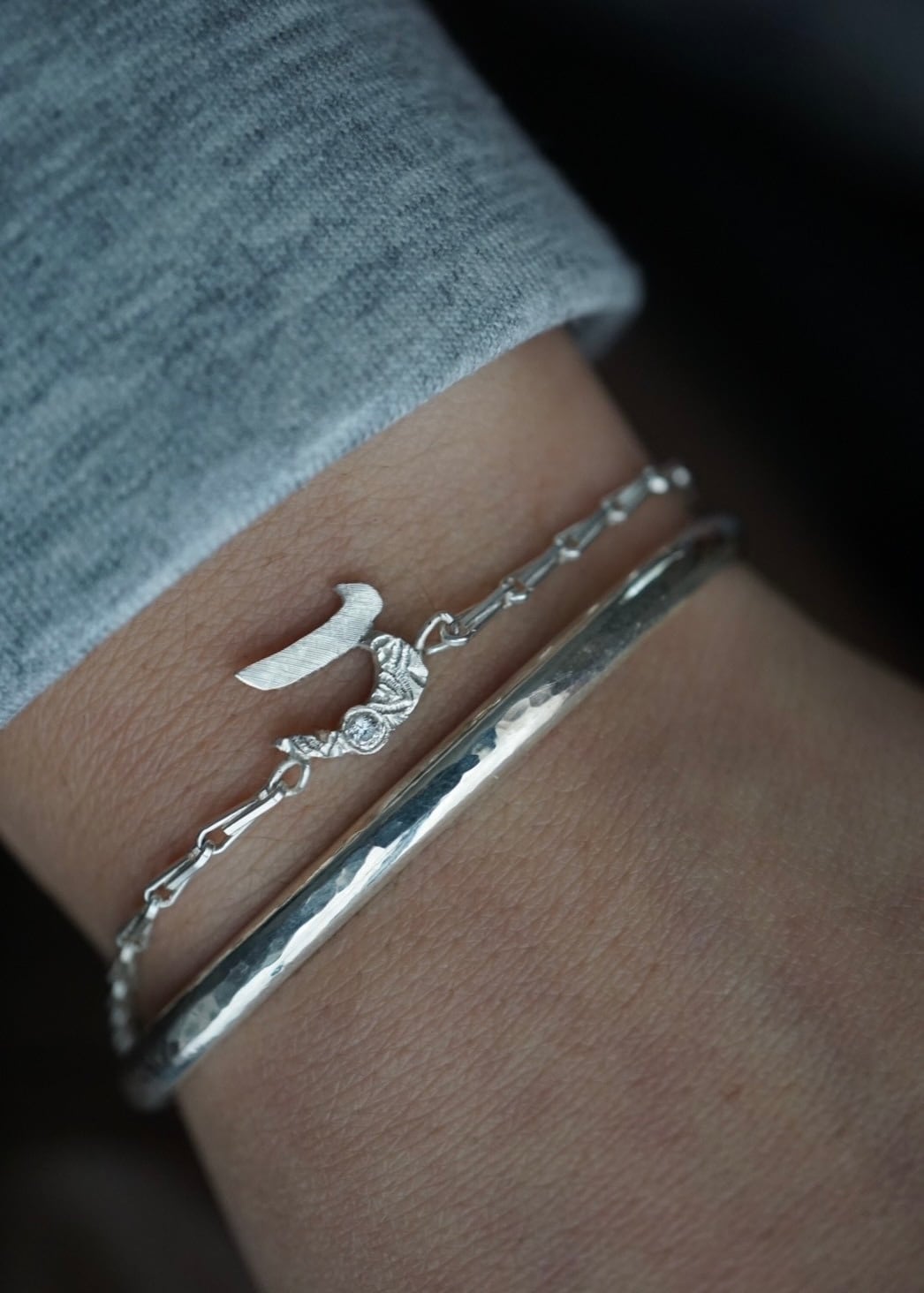 また、イニシャルとチェーンが自然に馴染むようデザインされており、主張しすぎず“さりげなく上質”