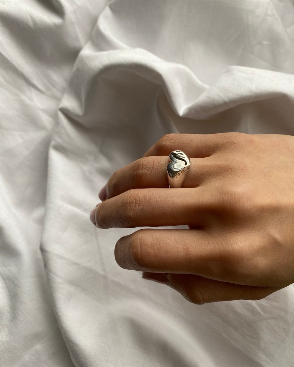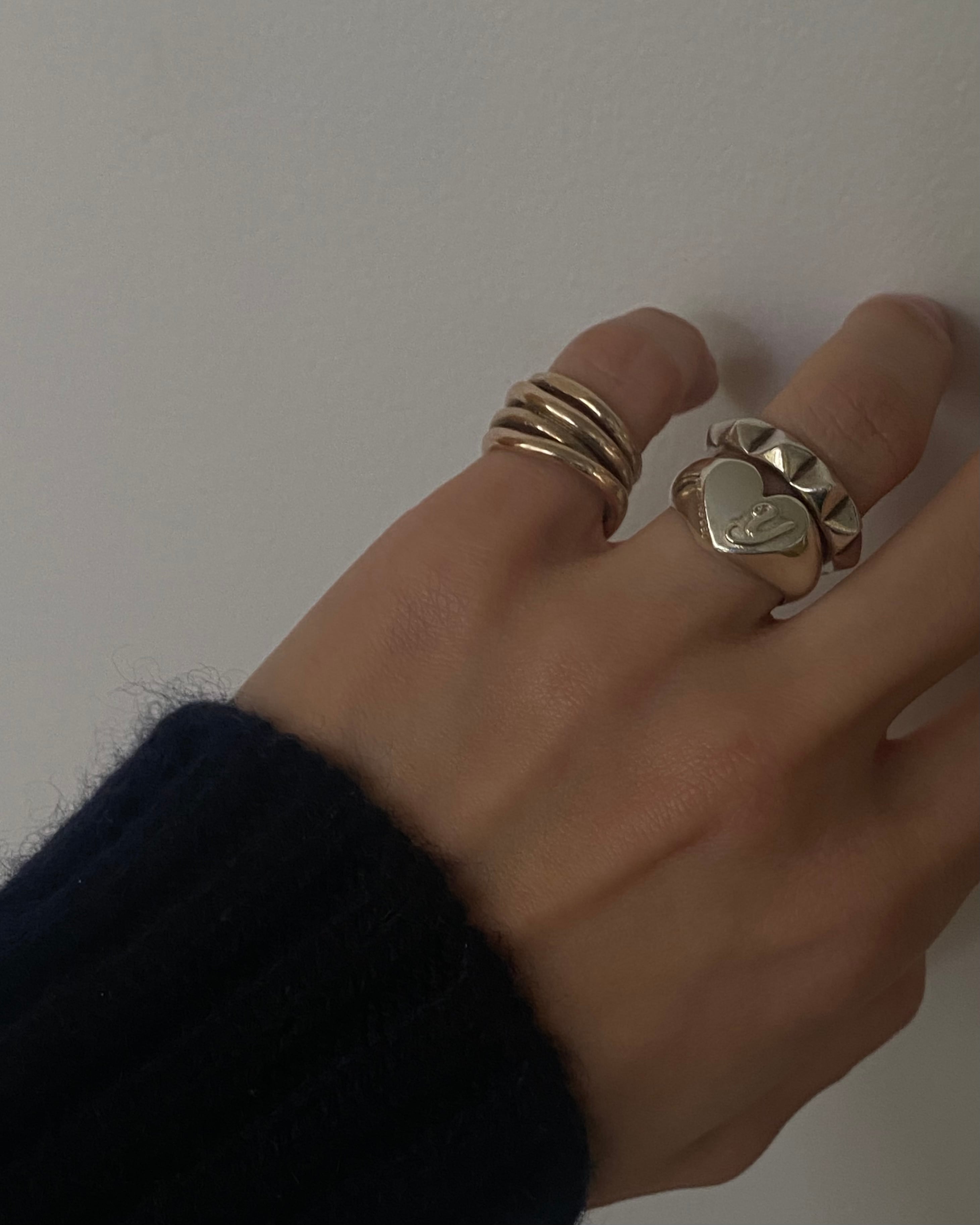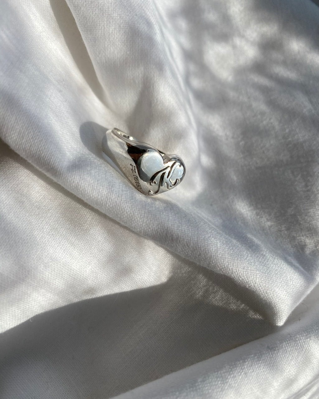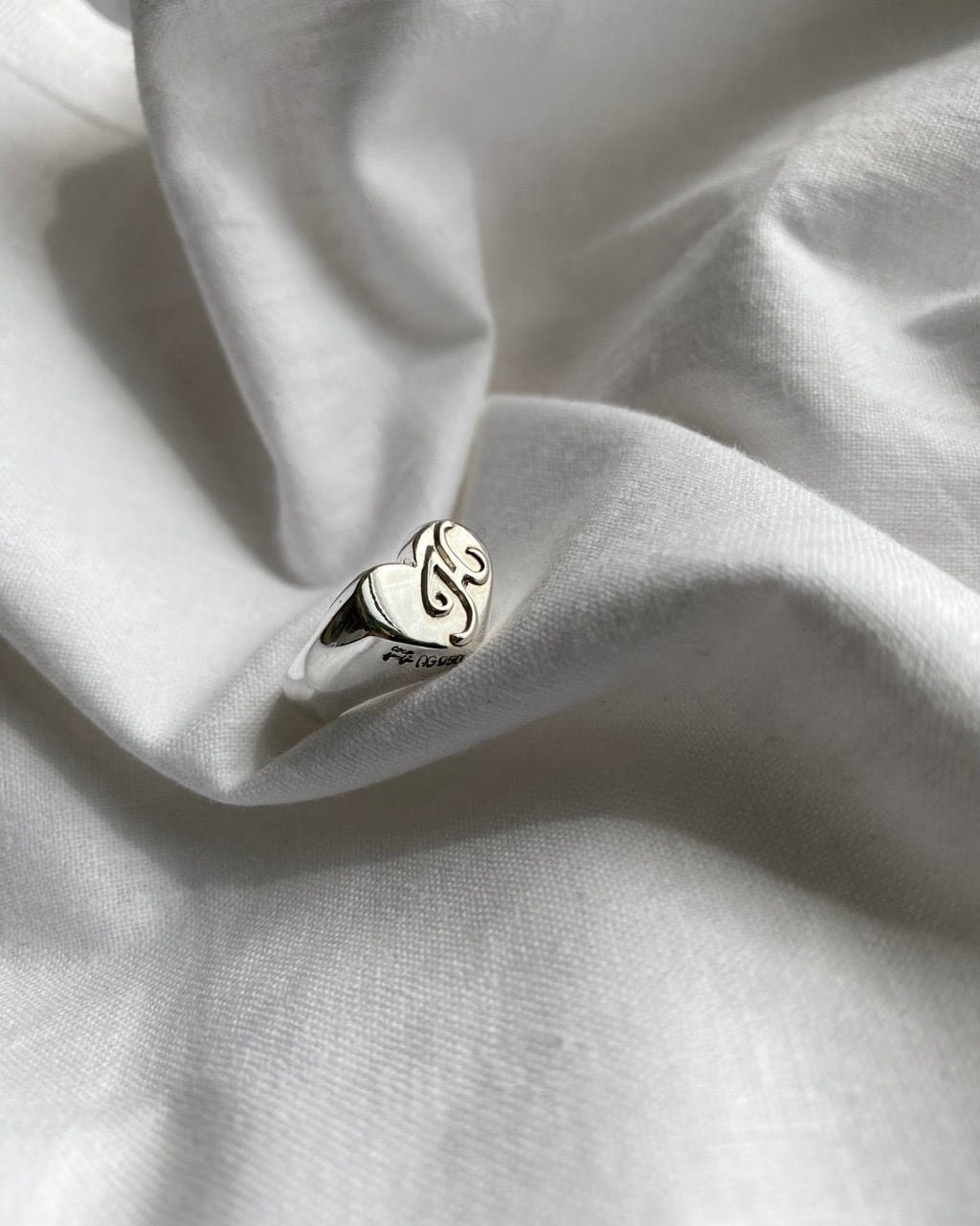 人気のハートシグネットリングのエンボスイニシャルバージョンです。