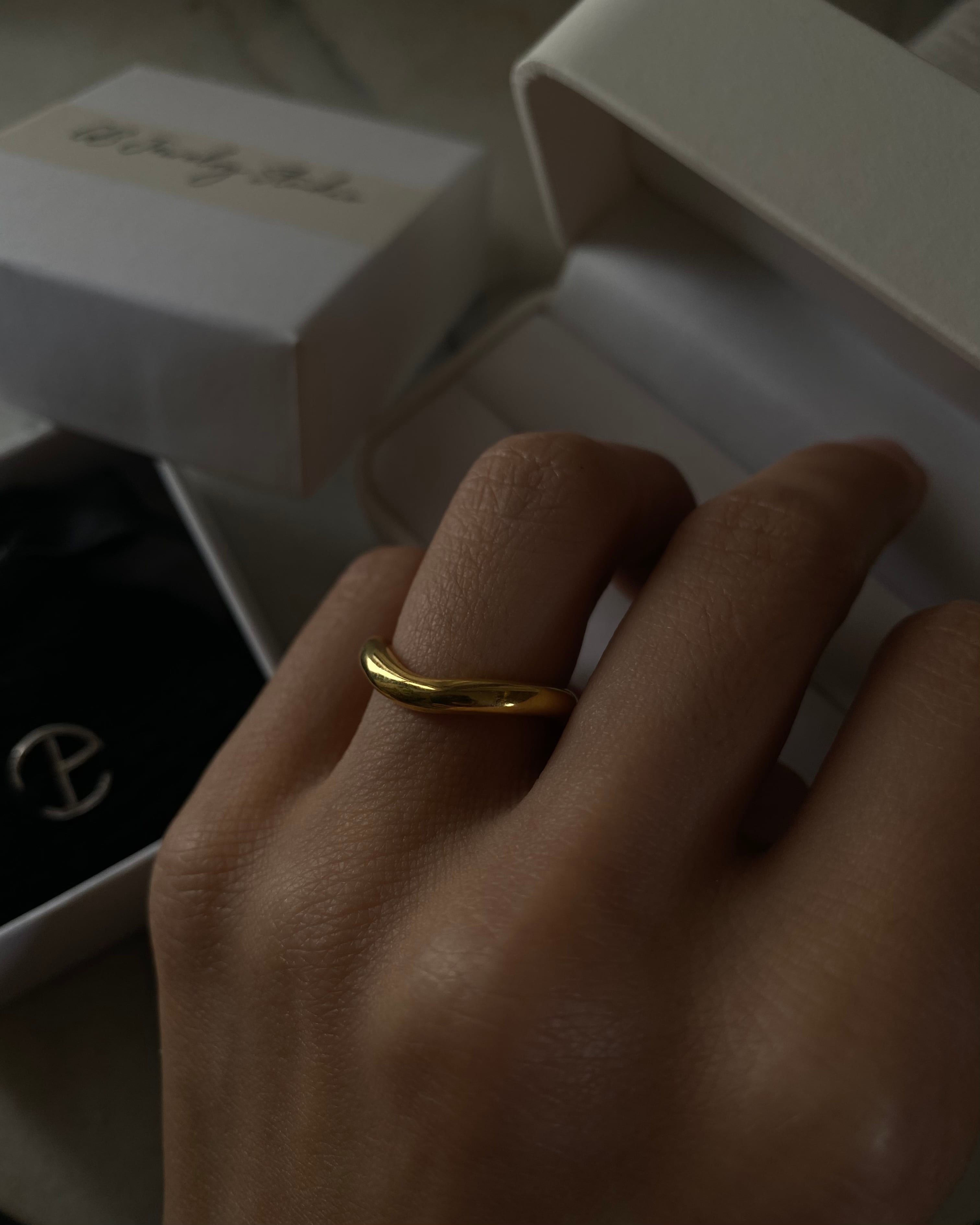 地金の輝きは残しつつ、少しスタイリングで遊びが欲しい時などにオススメのリングです。