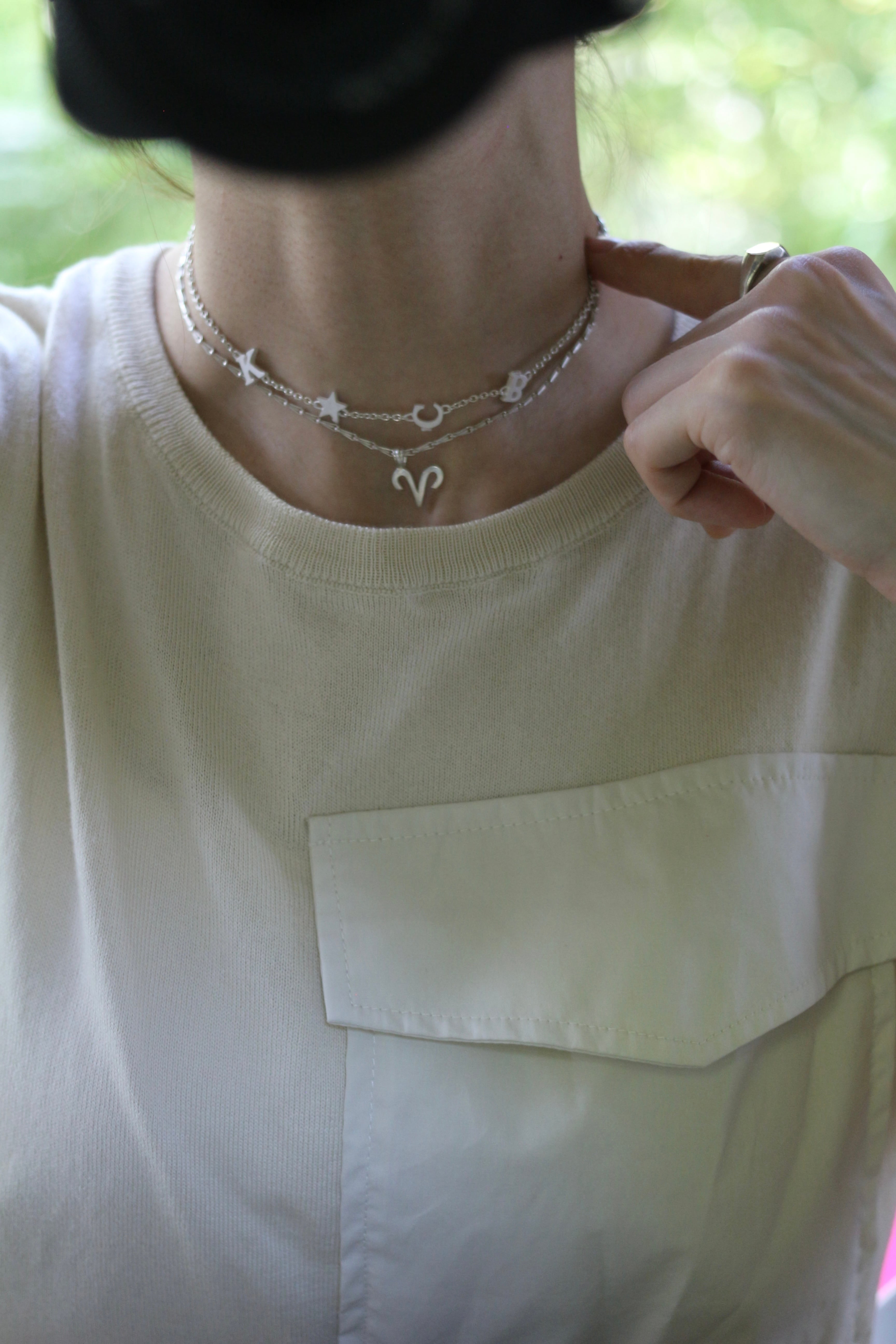 デザイナーのオリジナルハンドライティングの12星座ネックレストップです。シルバーペタロチェーンのセットになります。(画像3〜5枚目)